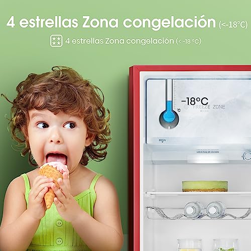 Esta nevera pertenece a la categoría de electrodomésticos y es perfecta para aquellos que buscan una nevera de una puerta con un toque retro. Además, cuenta con una clase de eficiencia energética F, lo que significa que es un electrodoméstico que consume más energía que otros con una calificación energética superior.
