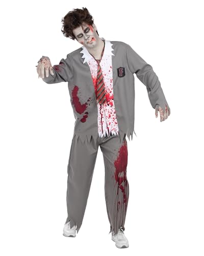 Funidelia Disfraz de estudiante zombie para hombre, Incluye pantalón, chaqueta con camisa simulada y corbata, Muerto Viviente - Traje para adultos para...
